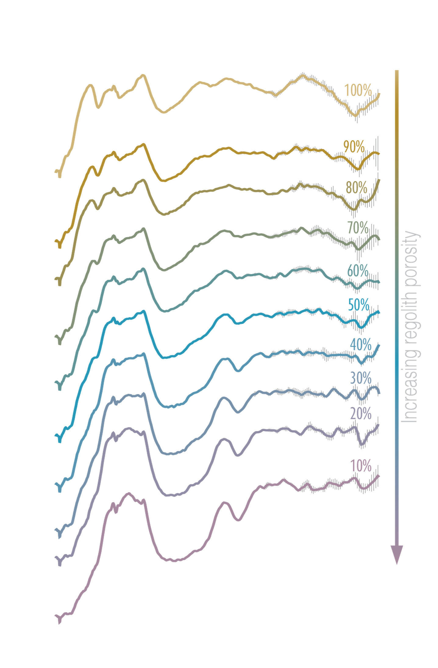 Spectra of particulate olivine with increasing regolith porosity from top to bottom (Martin et al., 2022).